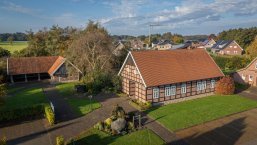 Im Ortsteil Holte (Gemeinde Lähden) bietet das kleine, gemütliche Gebäude auf der Saßlage eine besonders stimmungsvolle Kulisse für Ihre standesamtliche Trauung. Umgeben von alten Bäumen, viel Grün und einem idyllisch gelegenen Teich, strahlt dieser Ort Ruhe und Vertrautheit aus – perfekt für Paare, die sich ein persönliches und naturnahes Ambiente wünschen.